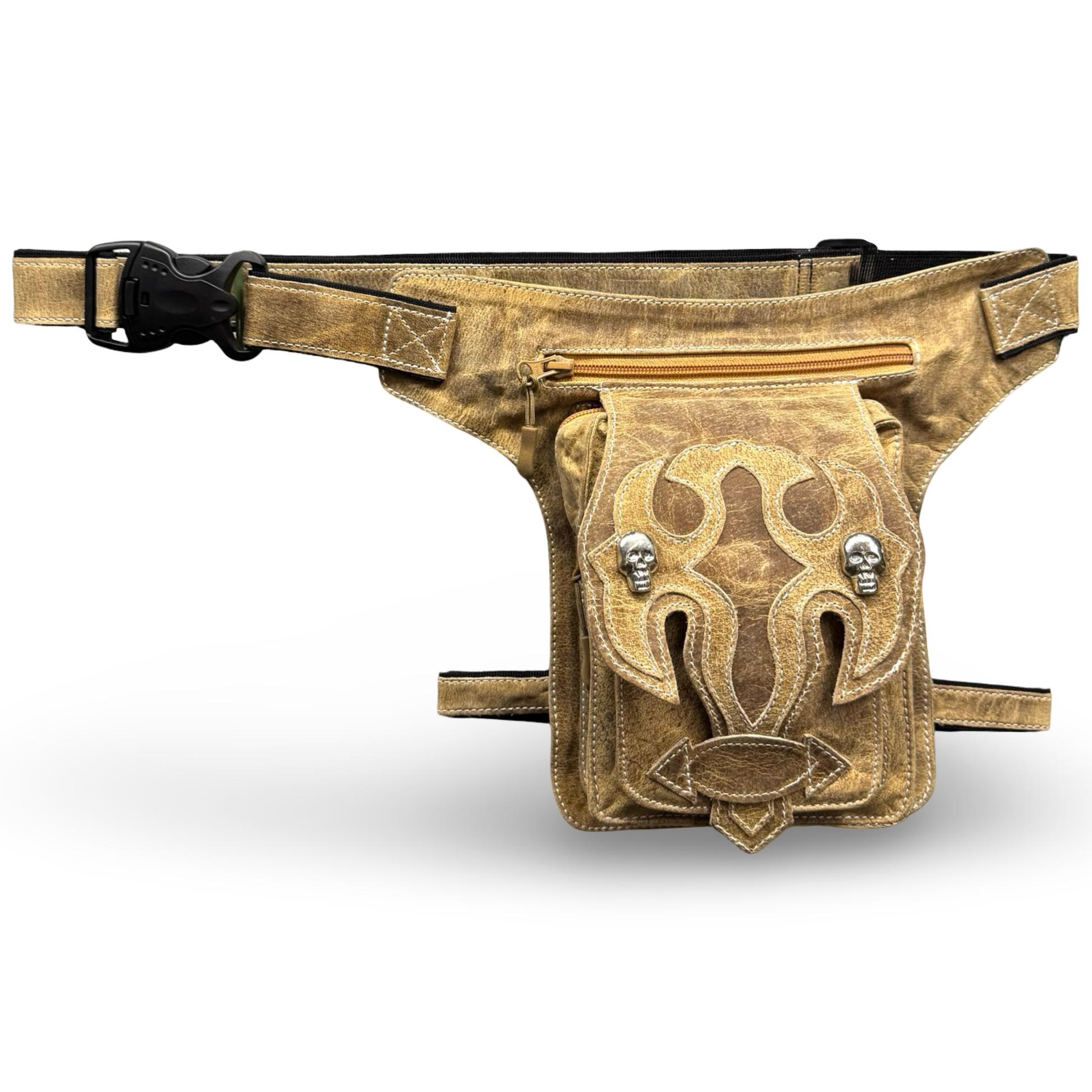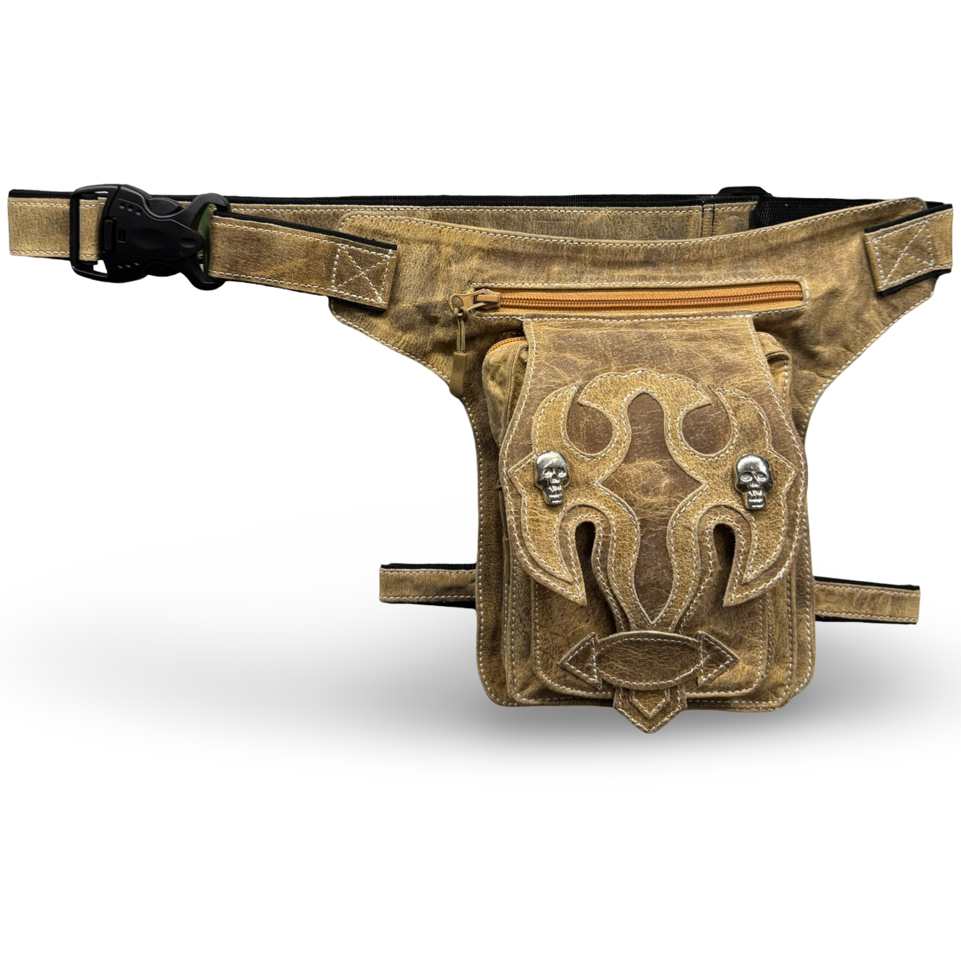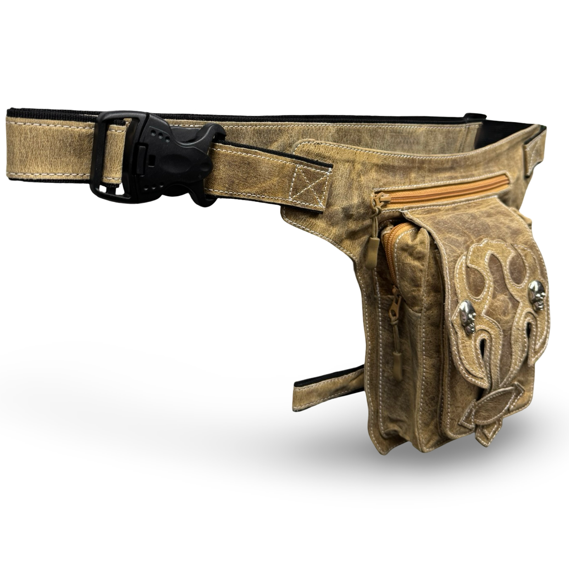 Leder Beintasche Herren Damen Motorrad Tasche Hüfttasche Braun Burned Sand