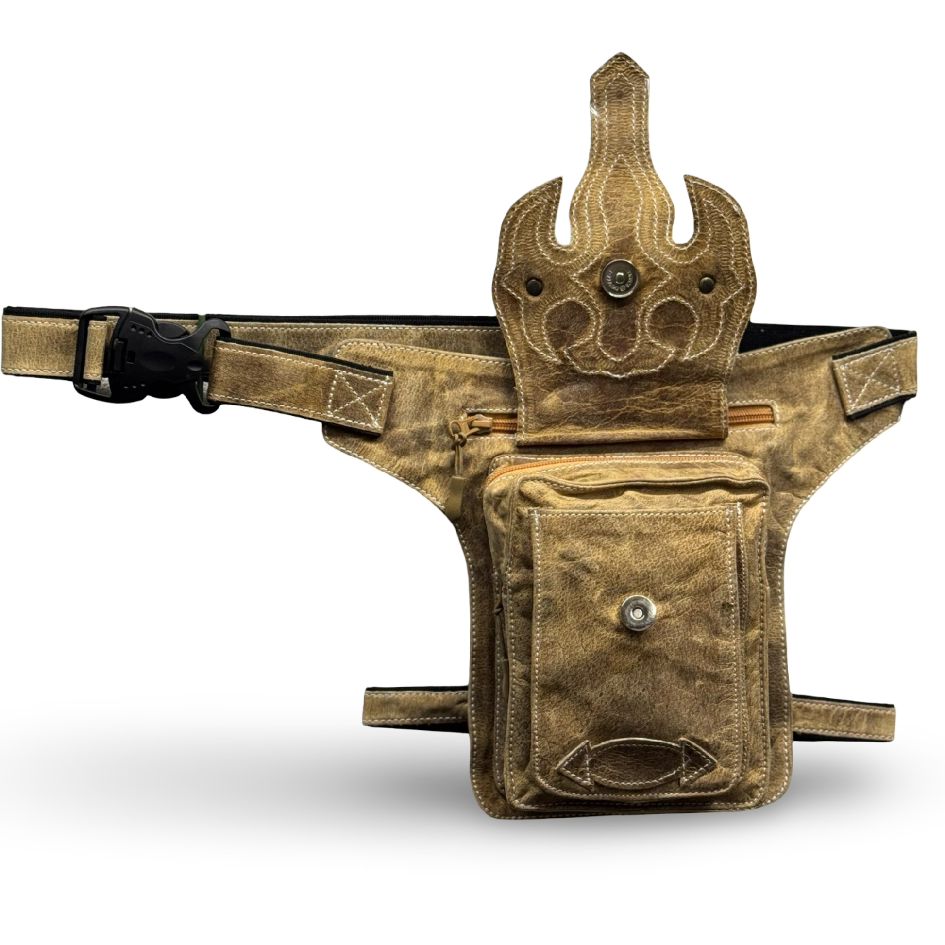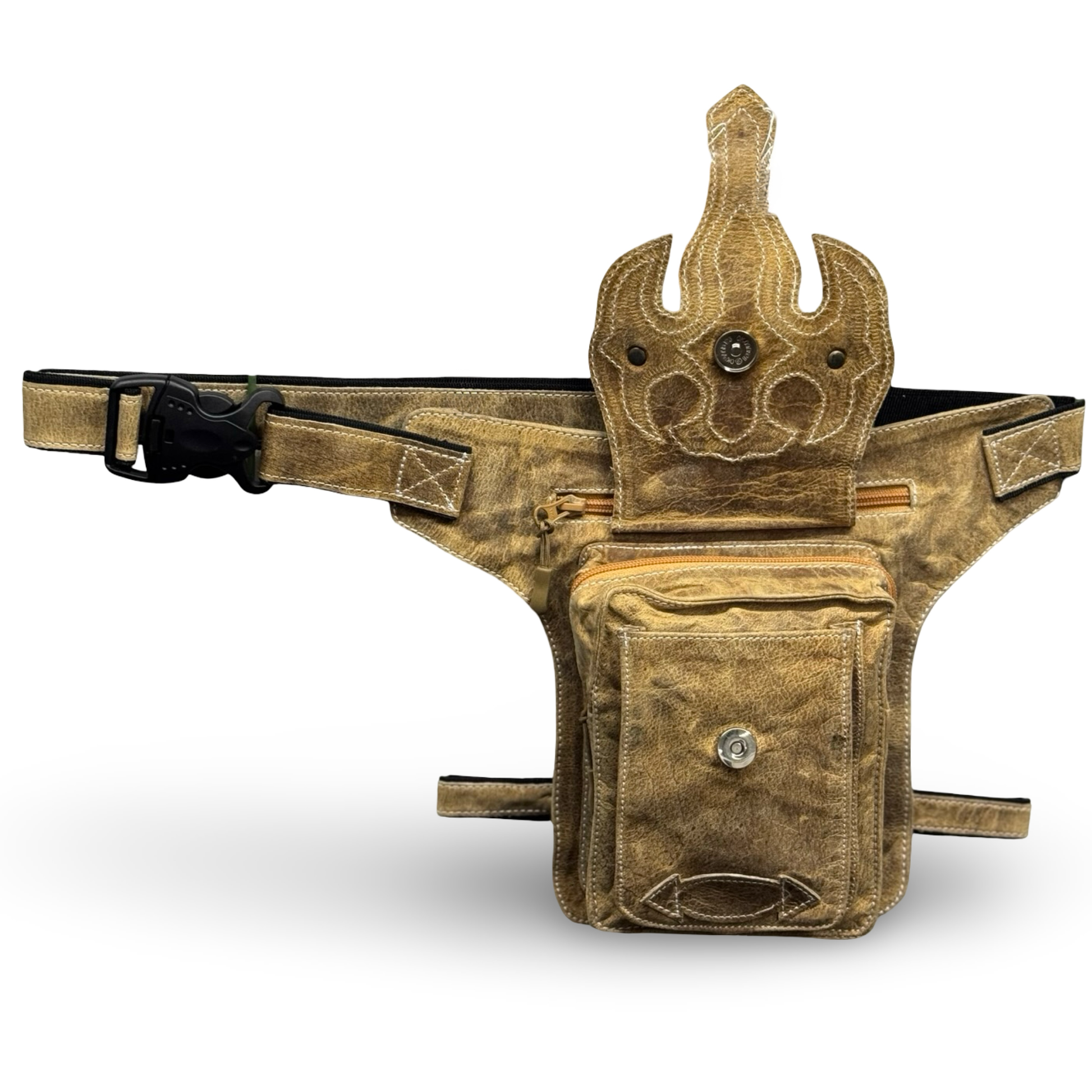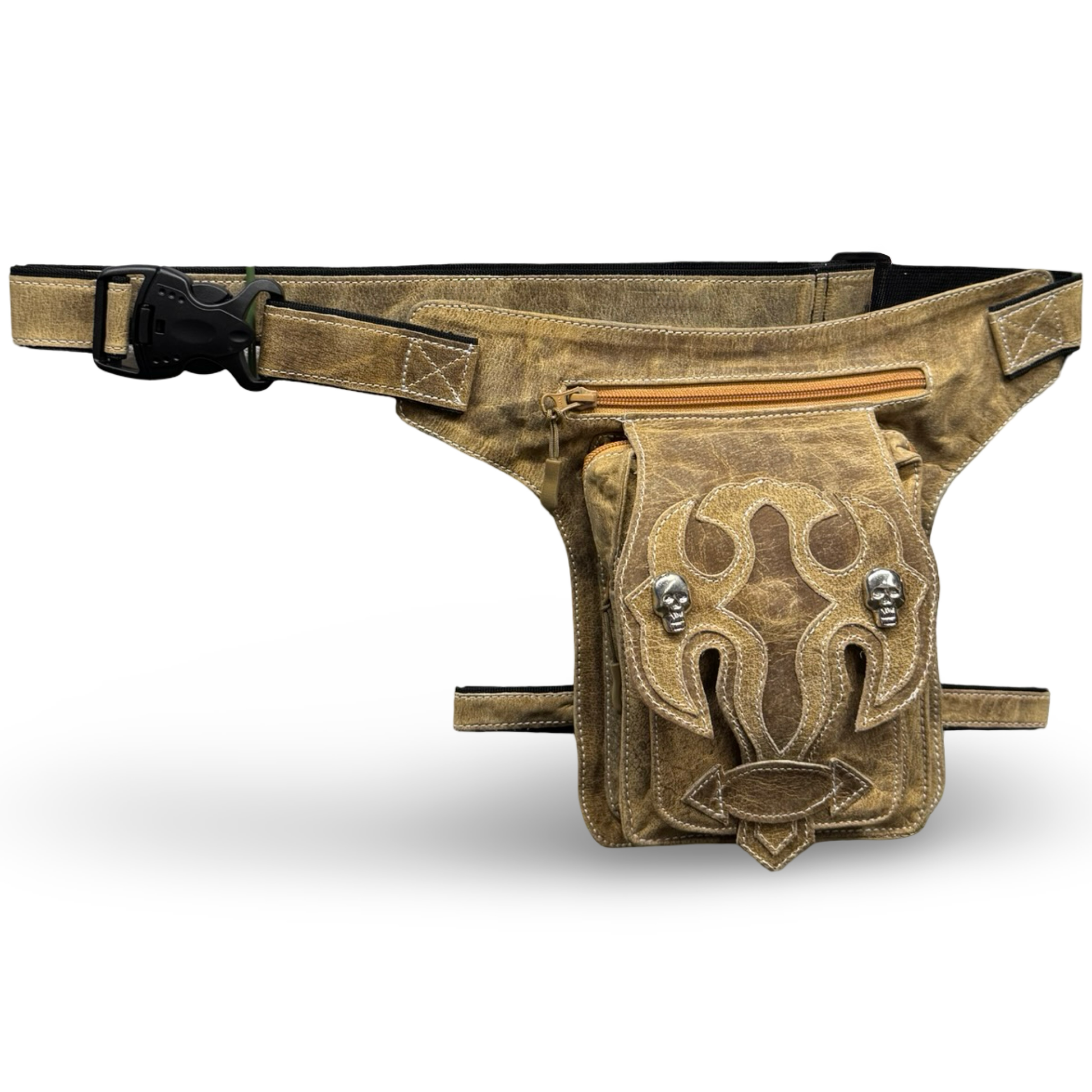 Leder Beintasche Herren Damen Motorrad Tasche Hüfttasche Braun Burned Sand